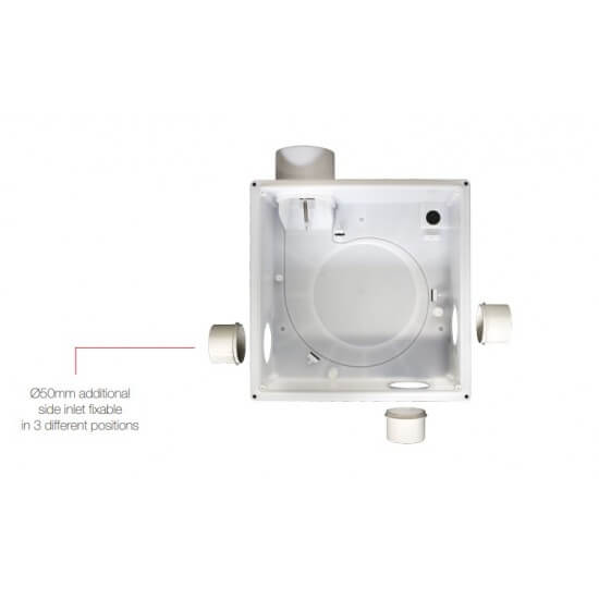 Ventilaatoril on külgtoruühendus, mida saab paigaldada 1 tk 80 mm läbimõõduga ventilatsioonitorusüsteemile, samuti 1 tk 50 mm läbimõõduga toru, mis tagab sekundaarse väljatõmbe. Viimane ühendusviis võimaldab haisu eemaldamist otse läbi WC-poti samaaegselt ruumi ventilaatoriga ventileerimisega ja selle saab hõlpsasti kinnitada ventilaatori korpuse külge.