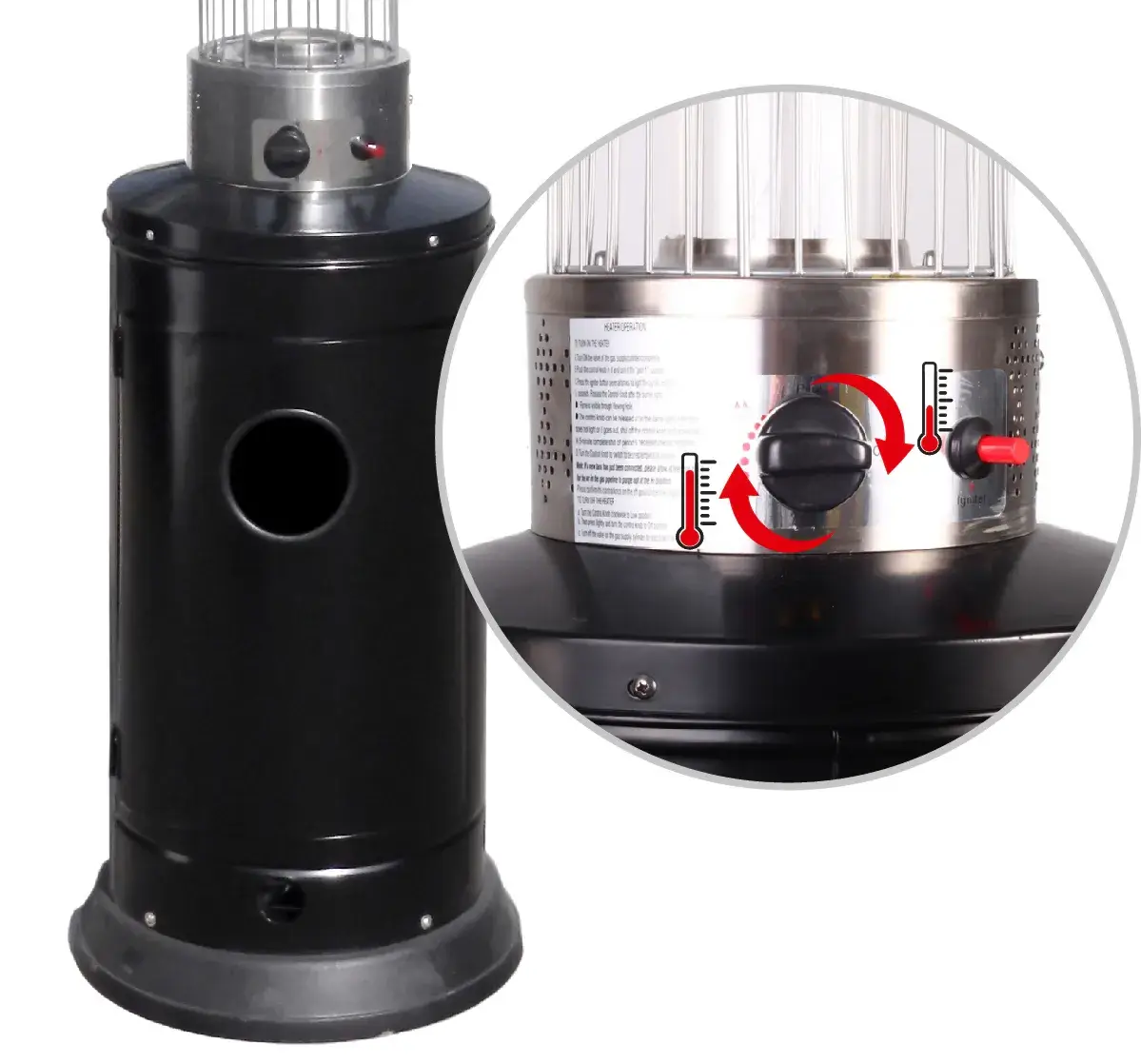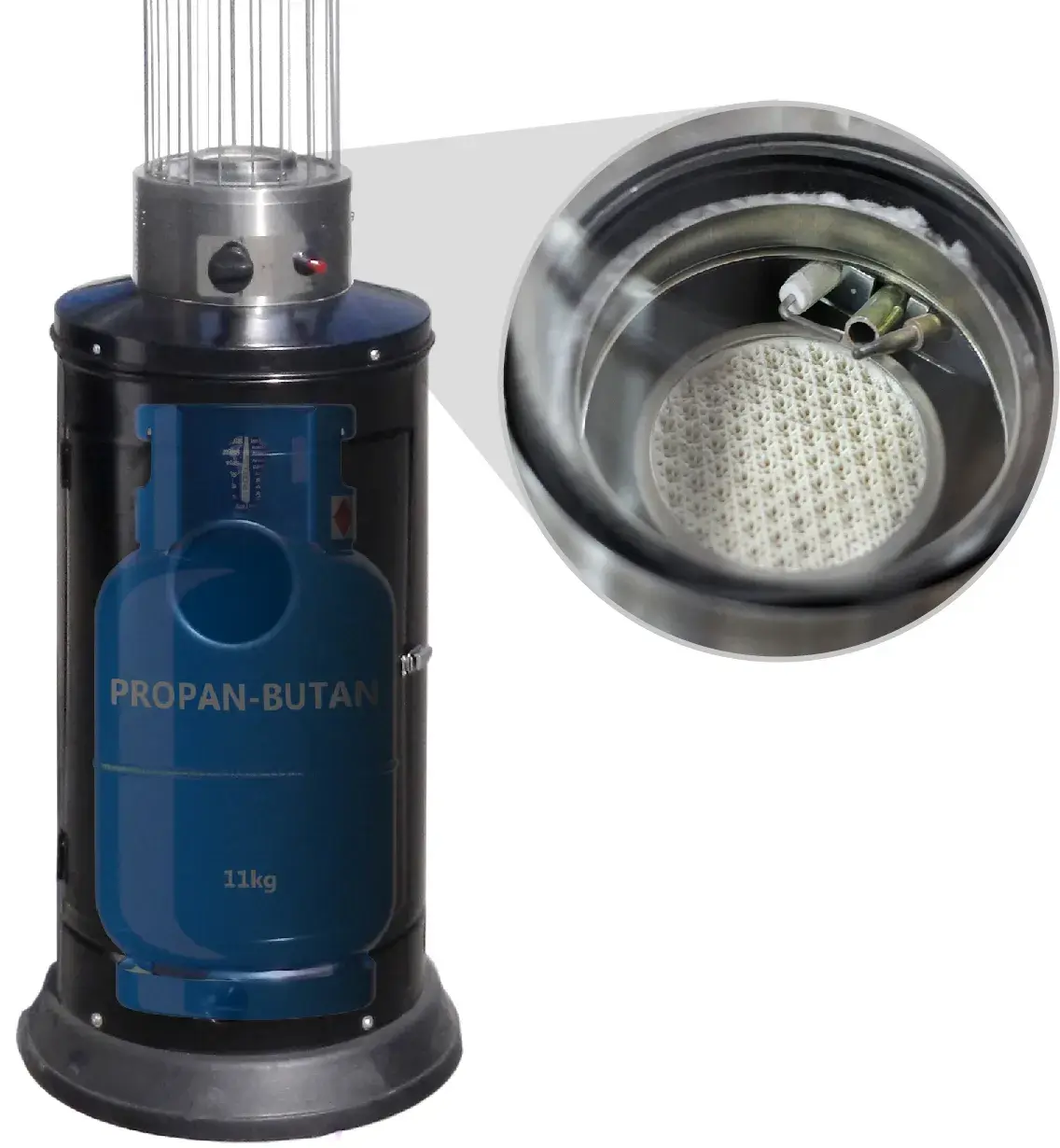 Gaasivoolu regulaator võimaldab reguleerida kiirgusvõimsust vastavalt välistemperatuurile. Lihtne energiaallikas – vedelgaas (gaasiballoon) tagab liikuvuse ja ohutuse.