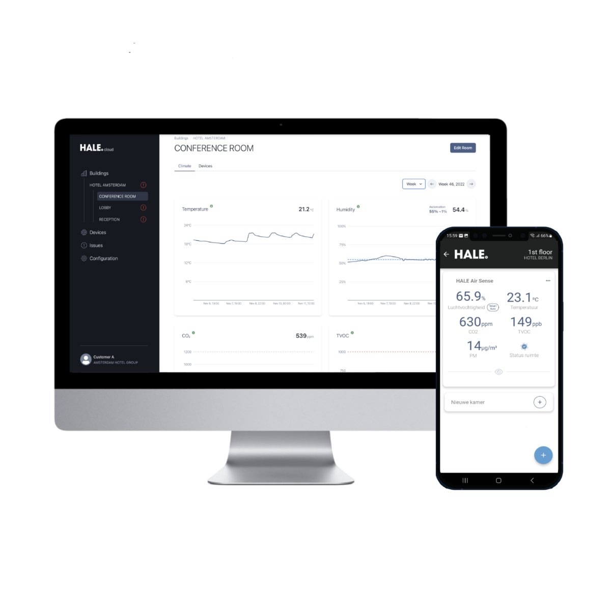 Nii pakume terviklikku lahendust teie õhukvaliteedi jälgimiseks ja selle õigel tasemel hoidmiseks. HALE CLOUD server asub Hollandis turvalises kohas ja järgib rangeid privaatsus- ja andmekaitseseadusi.