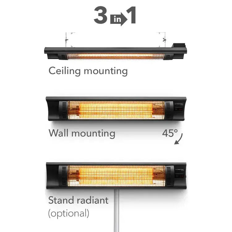 Saab kasutada seina- ja laesoojendusena ning statiivile kinnitamiseks