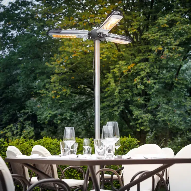 Nautige sooje suvetemperatuure rõdul, terrassil või kaubanduslikus välitoitlustuses infrapunakiirgusega küttekeha IRS 2005 abil, mis paistab silma ja erineb teistest. Nutikalt disainitud 3-tiivaline kiirgusküttekeha on spetsiaalselt disainitud pakkuma meeldivat igakülgset soojust aias istuvatele inimestele, kaetud välitoitlustusalal olevatele laudadele, müügiboksidele, baarilaudadele või välimessi stendidele. Kiirgusküttekeha, mida saab kasutada nii seisu- kui ka vihmavarjuseadmena, võtab vähe ruumi, et päikese loomuliku põhimõtte kohaselt oma soojust välja kiirata.