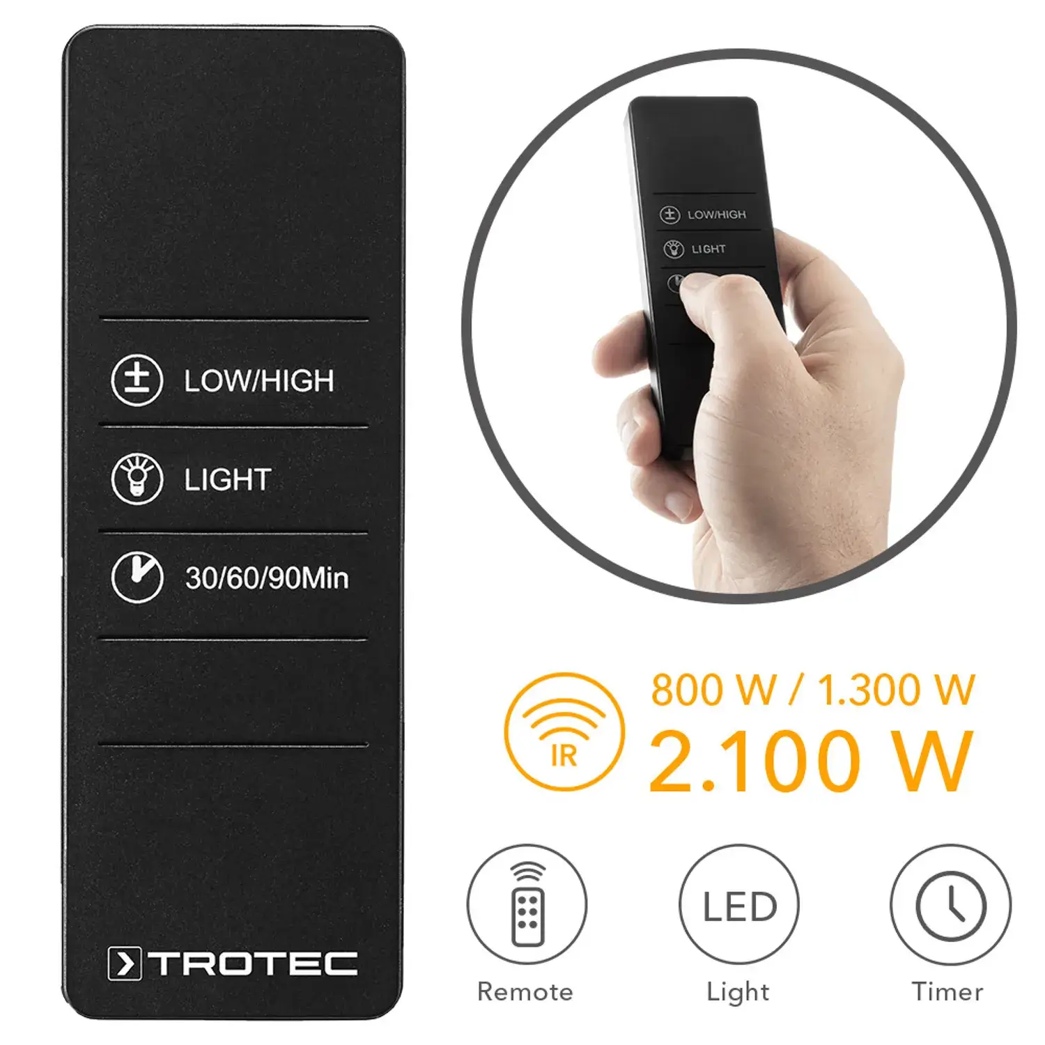 - Kolmeastmeline soojusvõimsus (800 W, 1300 W, 2100 W)
