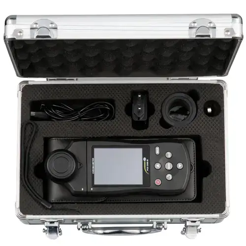Samuti saab spektrofotomeetriga mõõta valgustihedust luksides (lx) või jalaküünlas (fcd) ning valgusvoogu luumenites (lm) ja näidata värvide asukohta RGB värviruumis. Tänu ergonoomilisele ühe käega juhtimisele, suurele ekraanile, mälule, andmeliidesele ja tarkvarale saab spektrofotomeetriga mõõtmisi teha kiiresti ja tulemused on reprodutseeritavad. Testi tulemused saab salvestada tarkvara abil. Selle spetsifikatsioonid muudavad spektrofotomeetri suurepäraselt sobivaks valgustusseadmete ja -tingimuste klassifitseerimiseks ja optimeerimiseks erinevates kasutusvaldkondades.