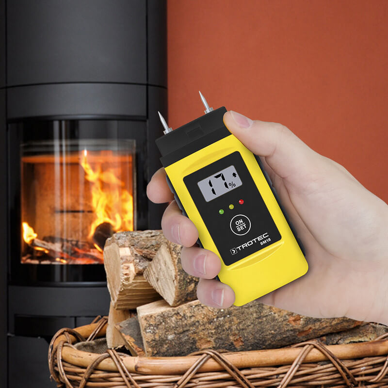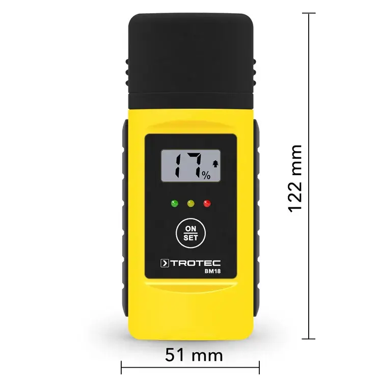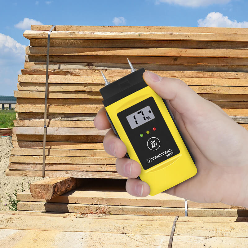 Vaid ühe juhtnupuga lülitate BM18 sisse ja saate teha kõik seadistused, näiteks valida puidu niiskuse ja ehitusniiskuse mõõtmisrežiimide ning temperatuuride vahel °C või °F.
