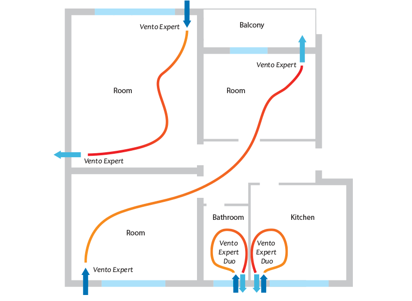 Vento Expert seadmed tuleks paigaldada elutuppa ja magamistubadesse, Vento Expert Duo seadmed aga kööki, vannituppa ja majapidamisruumi.