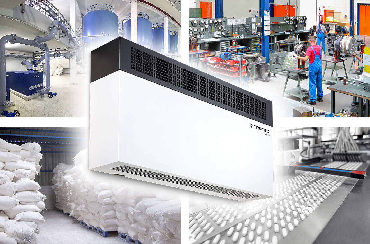 Ilma tõhusa kontrollita võib niiskus põhjustada mitmesuguseid probleeme tootmisprotsessides ja inventaris, mööblis või ladustatud kaupades. Optimaalne õhuniiskuse reguleerimine ei kaitse mitte ainult rooste, mädaniku, materjali lagunemise või halvenenud kvaliteedi eest kaupade töötlemisel ja ladustamisel, vaid ka hallituse teket saab usaldusväärselt vältida. Seinaga töötamisel saab DH 60 kasutada paljudes rakendustes, näiteks: