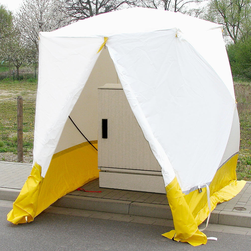 Sellisteks töödeks tagab telk ilmastiku eest kaitstud tööala, mis on hädavajalik kommunaalettevõtte kaablijaotuskappide elektritöödel. Telk kaitseb varjualusena ka vajalikku tehnikat, töömaterjali ja paigaldajaid vihma, tuule ja ilmastiku eest. Mitu päeva kestvaid töid saab teha KE sarja telgiga olenemata ilmastikuoludest ning vajadusel ka lisaküttelahendusega. Nende väliste küttelahenduste eraldi kaitseks pakub Trotec täiendava heliisolatsiooni funktsiooniga HeatBoxi ilmastikukindla konstruktsioonina.