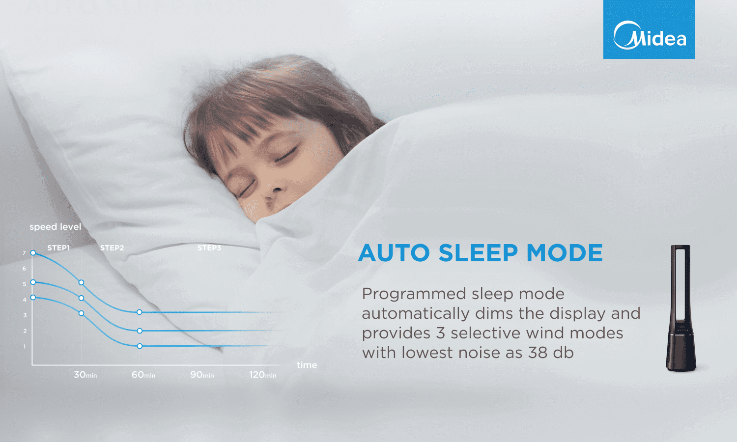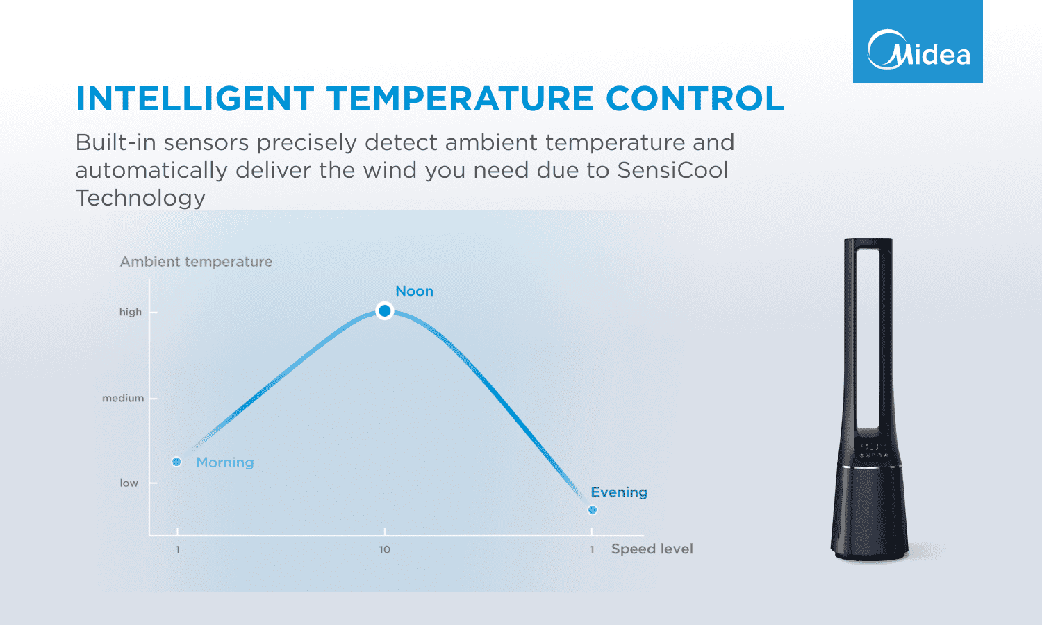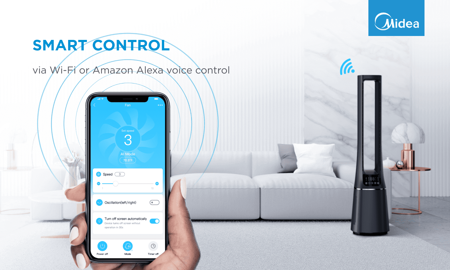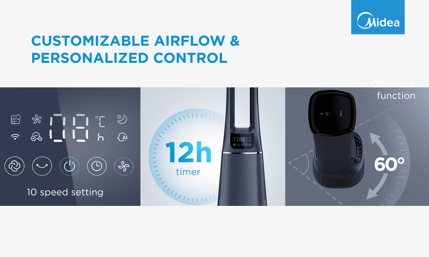 Ülim rahu ja mugavus, Midea labadeta ventilaator tagab äärmiselt vaikse töö kõigil kümnel kiirusel.