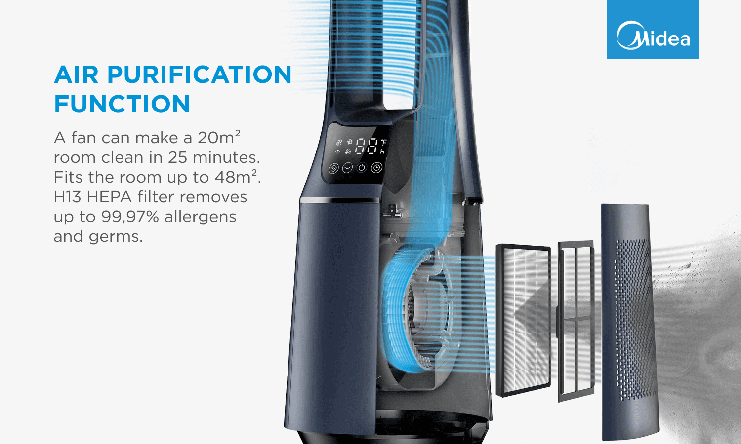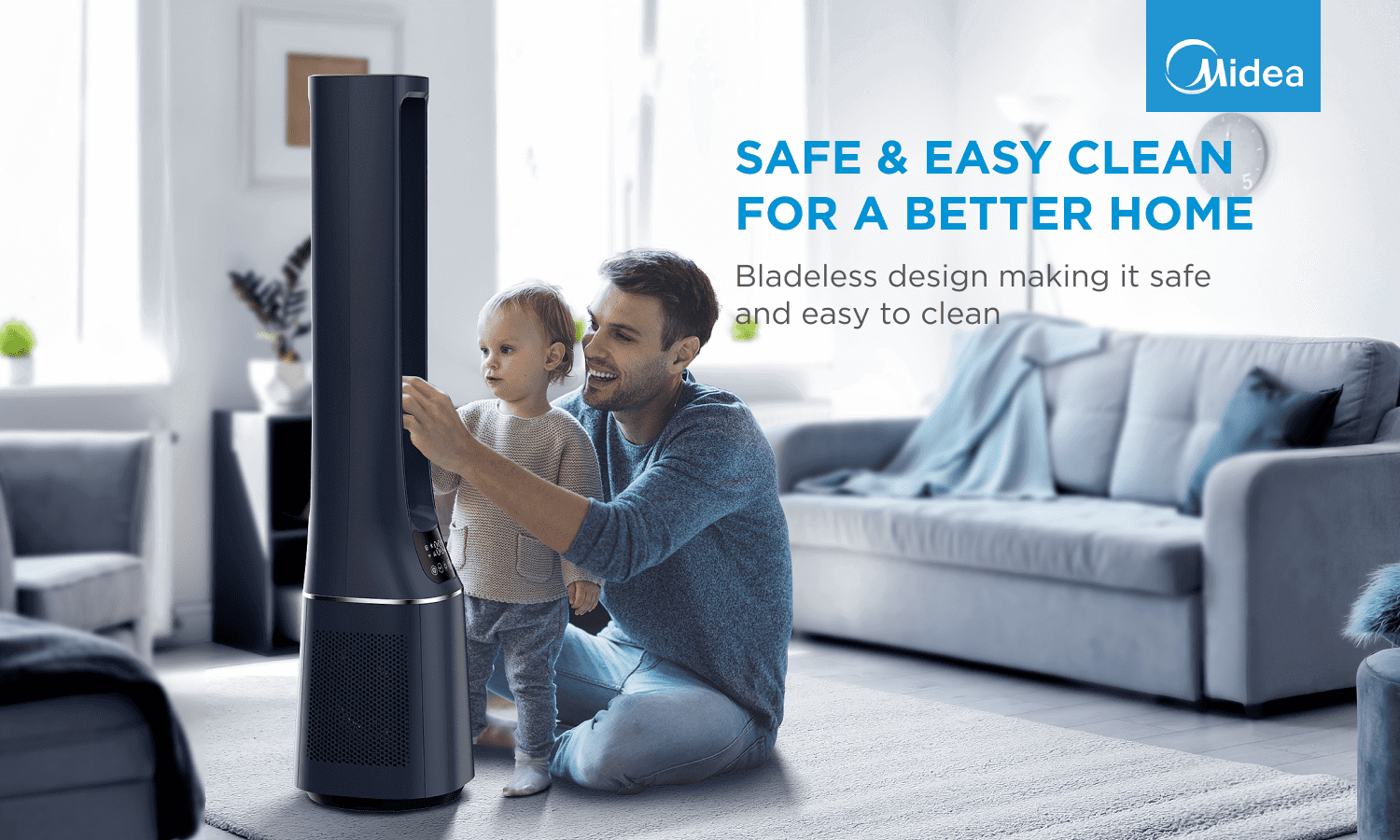 Midea Bladeless DC ventilaatori ja HEPA õhupuhasti elegantne ja kaasaegne disain ei paku mitte ainult funktsionaalsust, vaid sobib ka iga kodu sisekujundusega!