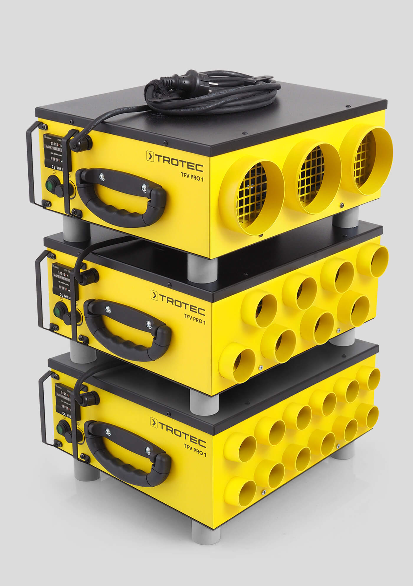 Standardses paigalduses tekitab TFV Pro 1 põranda lähedal optimaalse õhujaotusega laia õhuvoolu, mis muudab selle ideaalseks kuivamise kiirendajaks märgade põrandakatete või niiskete tasanduskihtide jaoks.