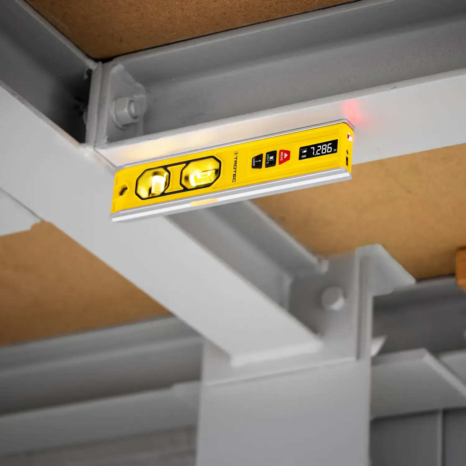 Lasermõõtmisega määratud andmed kuvatakse selgelt loetavalt taustavalgustusega mitmerealisel ekraanil. Tänu pidevale mõõtmisele saab mõõteandmeid pidevalt millimeetri täpsusega salvestada. Mõõtmisi saab teha täpse gabariidi esi- või tagaservast. Horisontaalne ja vertikaalne vesiloodi, vajadusel koos valgustusega, annavad teile igal ajal infot kokkupandava objekti täpse asetuse kohta.